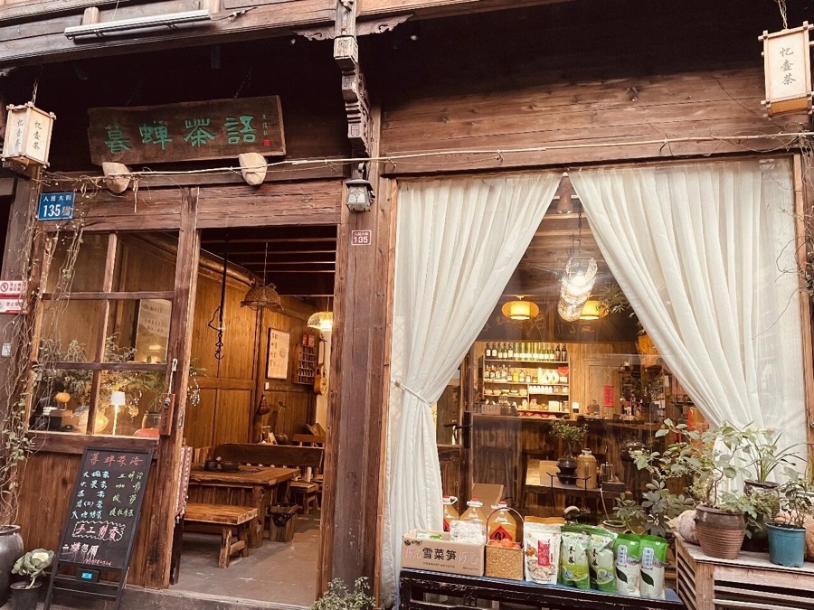 藏在老街烟火里的明己烤茶,承袭少数民族古法火塘技艺。用炭火烤制、土罐翻抖,茶汤带着焦香,温润醇厚。店主还融入了太极养生理念,茶性温和不伤胃。傍晚时分,围坐在火光融融的土罐旁,弹吉他、敲手鼓,在一炉烟火、一盏烤茶中,遇见最本真的自己。